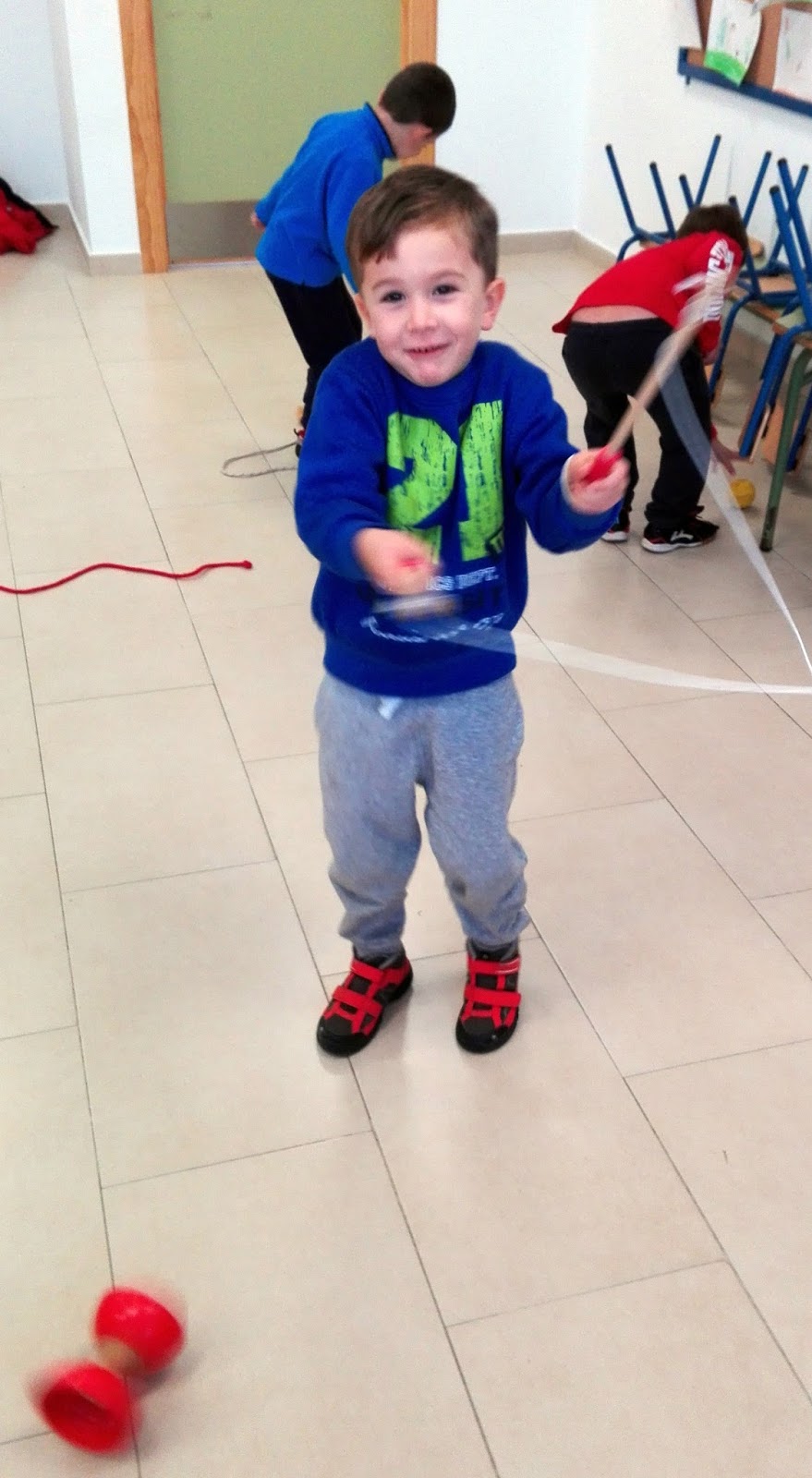 Cada uno tenía uno y hemos hecho unas pequeñas carreras intentando mantener el globo con las diferentes partes del cuerpo que la seño iba diciendo.